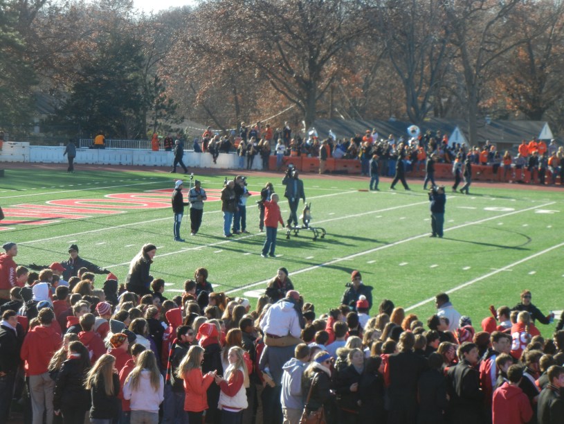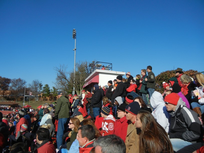 It was a glorious fall day, cool enough for hats and gloves but sunny. This game always attracts a large crowd, so big, in fact, I wondered who’s home cooking the turkey.