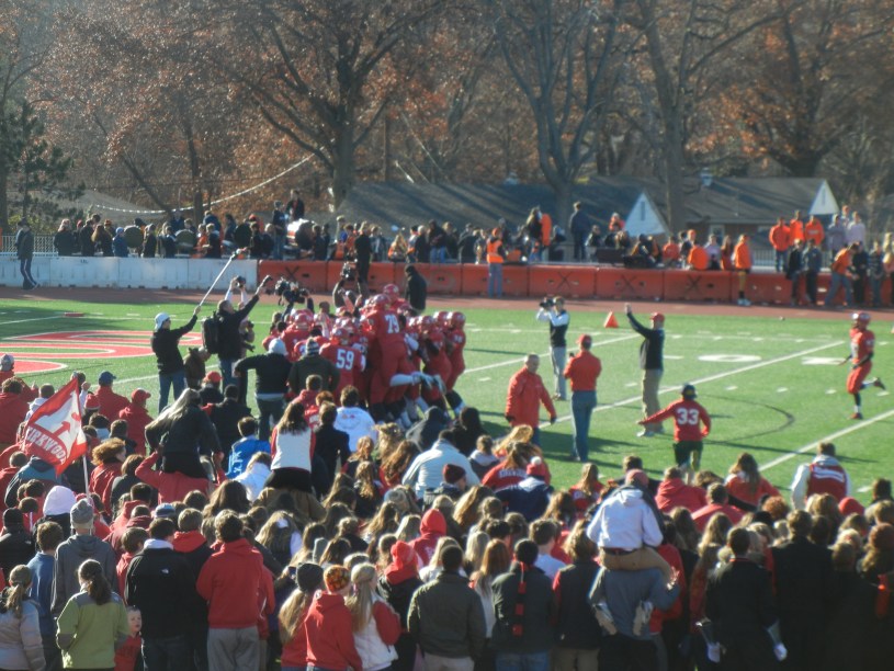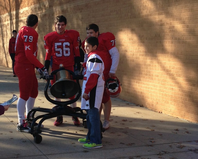 As the last seconds ticked off the game clock the student body gathered on the sidelines to rush the field and reclaim the Frisco Bell, the symbol of the rivalry, it went to the winner of the game until next year’s match-up. Such enthusiasm as first the football team rang the bell and then the students rushed the field. The marching band played the alma mater and the fight song and the crowd lingered. It was pure joy and picture perfect Americana.