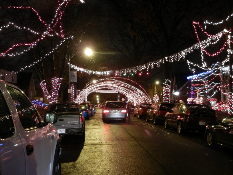 We went to Candy Cane Lane in the St. Louis Hills neighborhood near Ted Drewes. Neighbors coordinate their elaborate displays for several blocks; they create light tunnels across the street and even dress in a Christmas tree suit to greet the cars. What these neighbors started for fun is now also a fundraiser. They certainly embrace the true spirit of Christmas on Candy Cane Lane.
