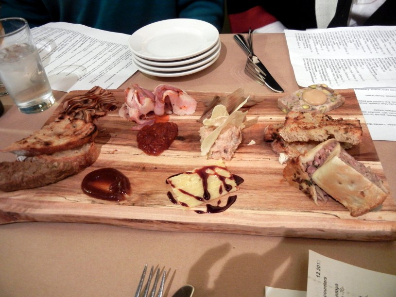 Our hearts filled with cheer, we made our way to Farmhaus to fill our bellies with a delicious meal. We started with the Farmhaus Butcher’s Plate – house-made meats, cheeses and spreads it was perfect for sharing. We also decided to order 4 entrees and share those as well. We had the famous Farmhaus bacon-wrapped meatloaf, a New York strip steak, turkey ballotine, and triggerfish. Each dish was fresh and flavorful as well as filled with unique flavor. The smashed potatoes, the roasted root vegetables, the gravies and steak sauces were not just accompaniments to the main dishes but tasty recipes on their own. For dessert we had a peanut butter cup, a delectable peanut butter and chocolate dessert. I must stop at Farmhaus again, if for no other reason to have the peanut butter cup one more time before I move.