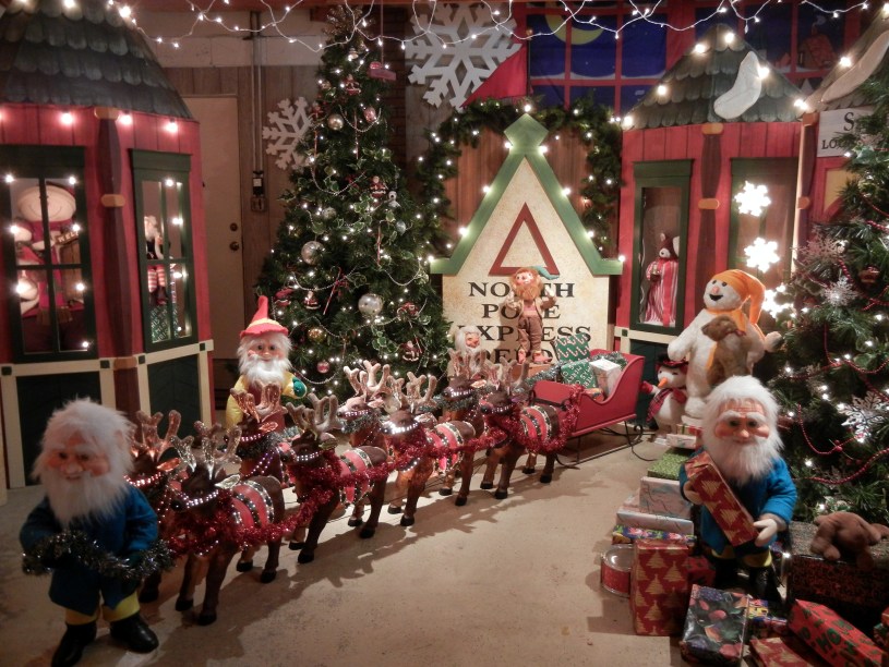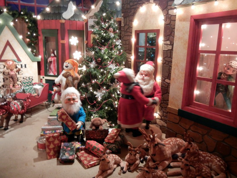 We also went to Santa’s Workshop – or at least that’s what we called it. The owner of this house took great care in recreating the North Pole in their garage, with reindeer up on the roof and lights across the lawn. Finally we went to the Santa Bear house, another elaborately decorated house, but this one done with all kinds of bears.